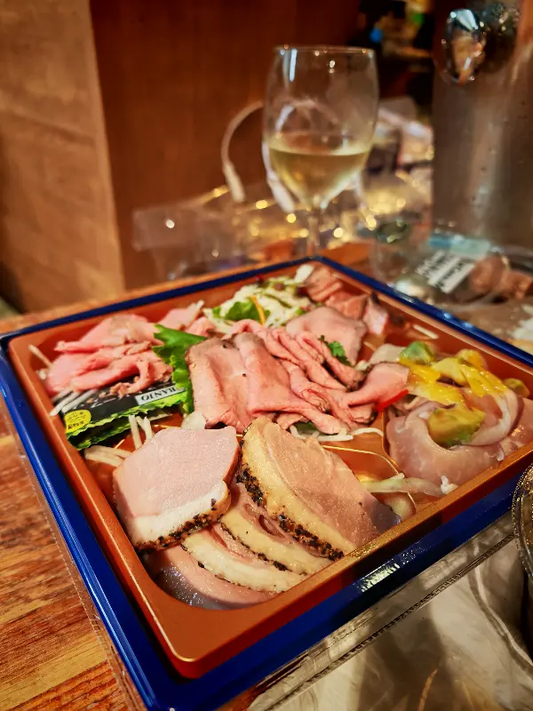 무제한 와인과 함께 곁들일 음식으로는 푸드홀 내 다른 가게에서 구매한 음식들을 자유롭게 가져와 먹을 수 있습니다. 초밥, 튀김, 샐러드 등, 원하는 음식을 골라 와인과 함께 즐기면 더욱 풍성한 시간을 보낼 수 있습니다. 마치 피크닉을 온 듯한 기분으로, 다양한 음식을 맛보며 와인을 즐겨보세요.