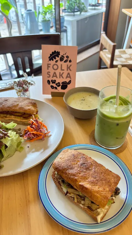 신선한 채소와 과일, 곡물을 사용하여 만든 샌드위치, 수프, 디저트는 맛과 영양을 모두 만족시킨다. 특히 버섯 페스토 산도는 Folk Saka의 대표 메뉴 중 하나인데, 쫄깃한 빵과 향긋한 페스토, 신선한 버섯의 조화가 환상적이다. 글루텐 프리 옵션도 준비되어 있어 알레르기가 있는 사람들도 안심하고 즐길 수 있다.