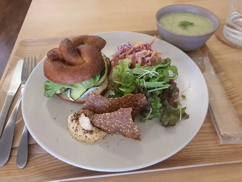 여행 중 잠시 잊고 있었던 건강을 되찾아주는 듯한 신선하고 맛있는 샌드위치 세트는, 바쁜 일정 속에서 잠시나마 여유를 느끼게 해준다. 샌드위치와 함께 나오는 수프는 특히 인상적이었는데, 부드러운 식감과 풍부한 풍미가 잃어버린 입맛을 되살려준다.
