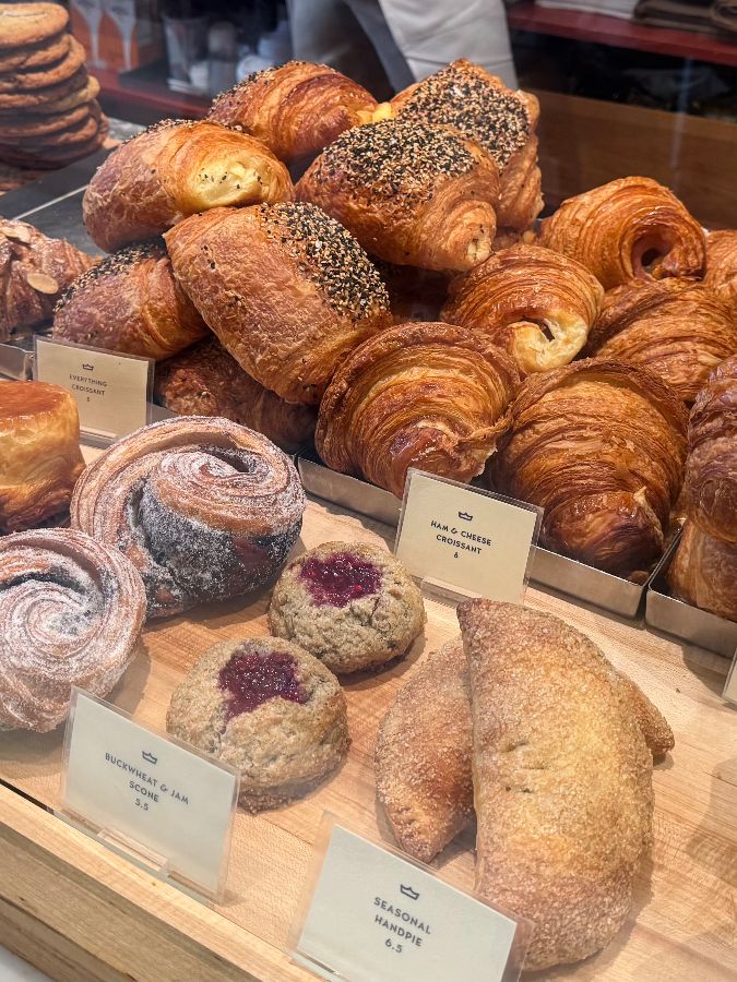 문을 열고 들어서는 순간, 눈 앞에 펼쳐지는 아름다운 페이스트리의 향연에 감탄사가 절로 나옵니다. 진열대 안에는 윤기가 흐르는 크루아상, 달콤한 시나몬 롤, 앙증맞은 마카롱 등 보기만 해도 행복해지는 다양한 빵들이 가득합니다. 마치 보석을 진열해 놓은 듯한 모습에 어떤 빵을 골라야 할지 고민에 빠지게 되죠.