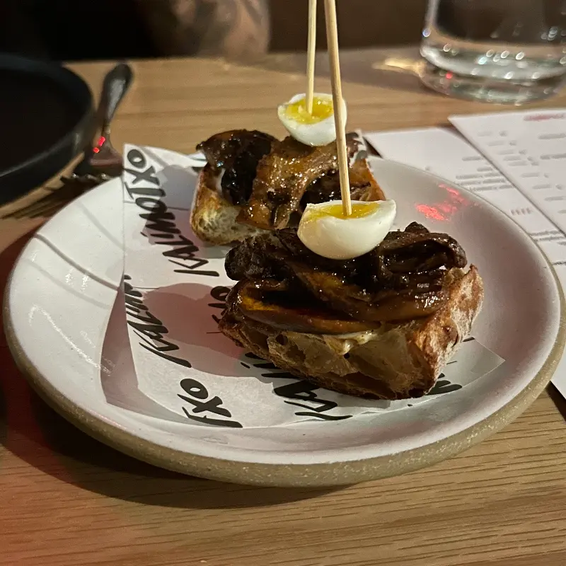 가장 먼저 등장한 것은 크로케타 드 하몽. 겉은 바삭하고 속은 촉촉한 크로켓 안에는 짭짤한 하몽이 가득 차 있었습니다. 입안 가득 퍼지는 하몽의 풍미는, 마치 스페인 어느 작은 마을의 식당에 와 있는 듯한 착각을 불러일으켰습니다.