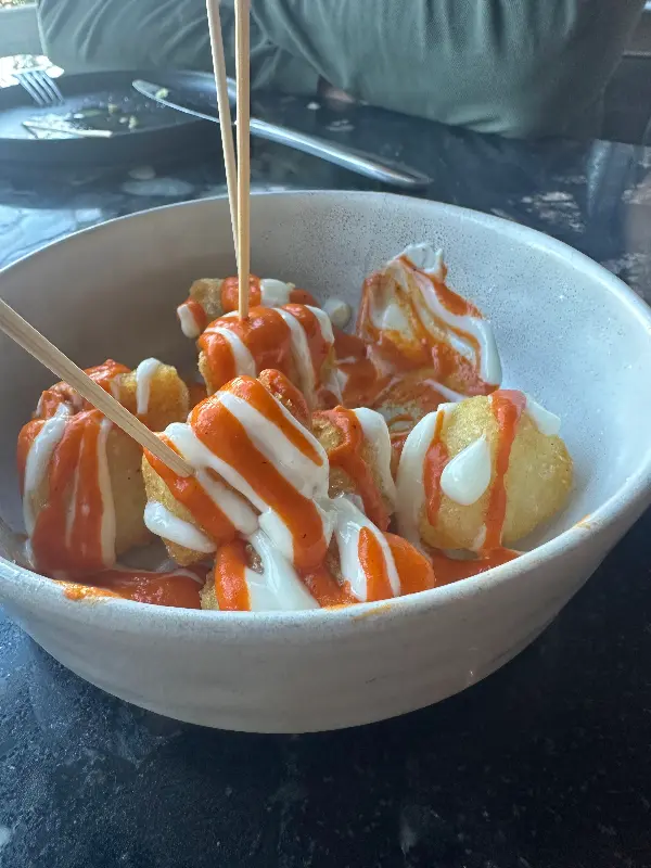 다음은 파타타스 브라바스. 바삭하게 튀겨진 감자 위에 매콤한 브라바스 소스와 아이올리 소스가 듬뿍 뿌려져 있었습니다. 감자의 고소함과 소스의 매콤함이 어우러져, 멈출 수 없는 맛을 선사했습니다.