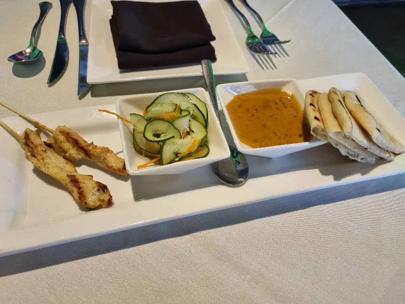 애피타이저로 제공된 홈메이드 플랫브레드와 닭꼬치는 기대 이상이었다. 따뜻하게 구워진 플랫브레드에 맛있는 소스를 곁들여 먹으니 입안 가득 퍼지는 풍미가 일품이었다. 닭꼬치 역시 부드러운 식감과 은은한 향신료의 조화가 훌륭했다. 곁들여 나온 신선한 채소 샐러드는 입안을 상큼하게 마무리해주는 역할을 했다.