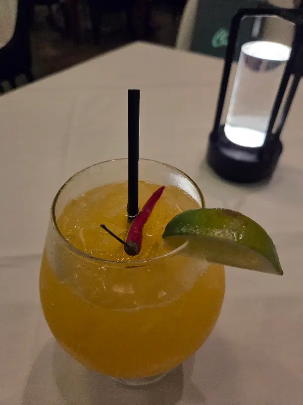 직원분의 추천을 받아 주문한 하와이안 선셋은 이름처럼 아름다운 색감을 자랑했다. 잔 안에는 오렌지색 음료와 함께 붉은 고추와 라임 조각이 들어 있었다. 한 모금 마시니 달콤하면서도 상큼한 맛이 입안 가득 퍼졌다. 특히 붉은 고추의 은은한 매운맛이 더해져 더욱 특별한 풍미를 느낄 수 있었다. 역시 딱 제 입맛에 맞았어요”라는 리뷰처럼, 완벽한 맛이었다.