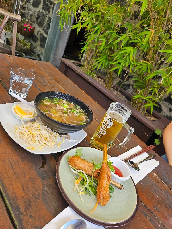 센에서 맛본 ‘치킨 포’와 ‘썸머롤’은 나를 하노이의 어느 길거리 식당으로 데려다 놓는 듯했다. 신선한 채소와 쫄깃한 면발, 그리고 촉촉한 닭고기가 어우러진 치킨 포는, 입안 가득 퍼지는 풍미가 일품이었다. 썸머롤 또한 신선한 재료들의 조화가 돋보였으며, 특히 땅콩 소스는 썸머롤의 맛을 한층 더 풍부하게 만들어주었다.