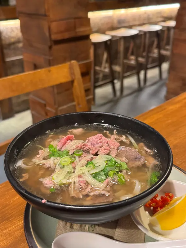 국물을 한 입 맛보는 순간, 감탄사가 절로 나왔다. 깊고 풍부하면서도 깔끔한 국물은, 마치 오랜 시간 정성껏 끓여낸 보약과도 같았다. 부드러운 소고기는 입안에서 살살 녹았고, 쫄깃한 면발은 완벽한 식감을 자랑했다. 특히 함께 제공되는 고추는 매운맛을 좋아하는 사람들에게는 최고의 선택이었다. 매콤한 고추를 곁들이니, 쌀국수의 풍미가 한층 더 살아나는 듯했다. 센의 쌀국수는 단순한 한 끼 식사가 아닌, 오감을 만족시키는 완벽한 미식 경험이었다.