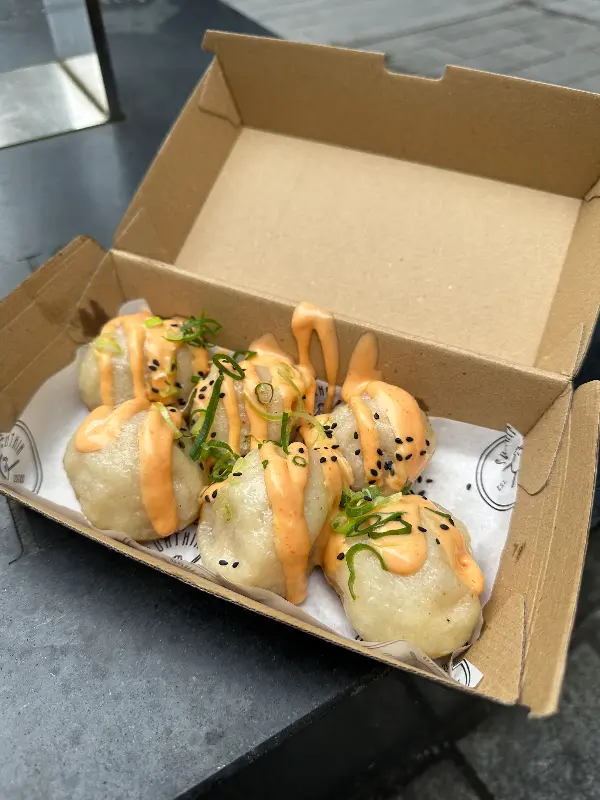 섬틴 덤플링의 만두는 깔끔한 포장으로 제공됩니다. 매장에서 바로 먹거나 포장하여 즐길 수 있습니다.