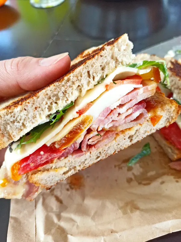 오렌지 케이크의 감동이 채 가시기도 전에, 쇼케이스 안에 진열된 샌드위치들이 눈에 들어왔다. 햄 치즈 토스트, BLT 샌드위치, 루벤 샌드위치 등 다양한 종류의 샌드위치가 있었는데, 하나같이 신선한 재료로 가득 채워져 있었다. 특히, 토마토를 곁들인 햄 치즈 토스트는 꼭 먹어봐야 한다는 추천에 망설임 없이 선택했다.