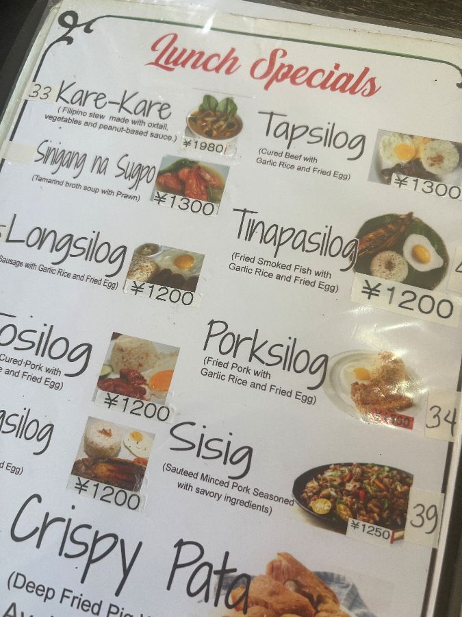 가게 문을 열고 들어서자, 마치 시간 이동이라도 한 듯 오키나와의 풍경은 온데간데없이 사라지고 필리핀의 어느 소박한 식당에 와 있는 듯한 착각에 빠져들었습니다. 나지막이 들려오는 필리핀 음악과 곳곳에 놓인 아기자기한 장식들, 그리고 테이블마다 앉아 정겹게 이야기를 나누는 현지 필리핀 손님들의 모습은 이곳이 얼마나 진정한 현지의 맛을 담고 있는지를 단번에 증명해 주었습니다. 한국인이나 일본인 여행객보다는, 정말 필리핀 본토의 맛을 그리워하는 이들이 삼삼오오 모여드는, 진정한 현지 감성의 아늑한 공간이었죠.