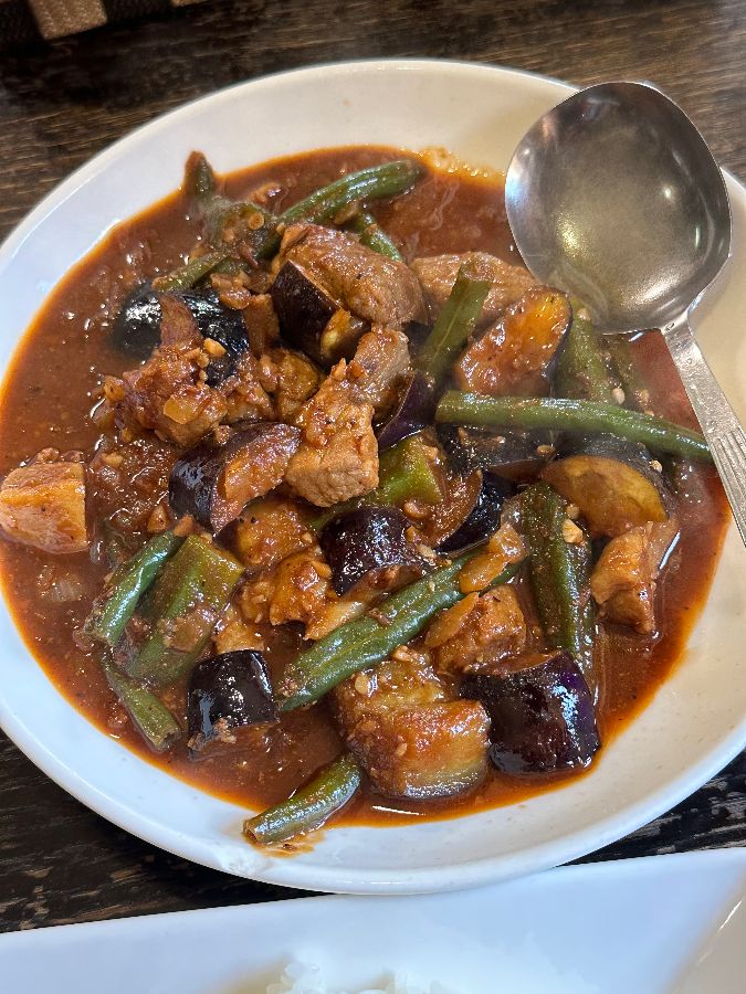 ‘페퍼 스테이크와 그레이비 소스’는 기대 이상으로 훌륭했습니다. 부드러운 고기와 진한 그레이비 소스의 조화는 서양식 스테이크와는 또 다른 매력을 선사하며, 필리핀 요리의 다양한 스펙트럼을 보여주었죠. 또한, 가지와 긴 꼬투리 콩, 돼지고기가 어우러진 붉은빛의 스튜는 깊은 감칠맛과 함께 풍성한 채소의 식감을 즐길 수 있어 균형 잡힌 맛을 선사했습니다.