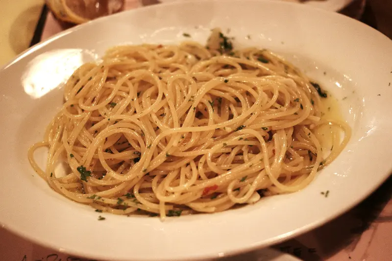 올리브 오일의 풍미가 가득한 알리오 올리오 스타일 파스타는 깔끔하면서도 깊은 맛을 자랑합니다.