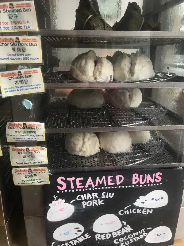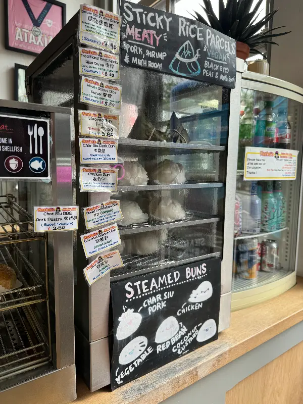 쇼케이스 안에는 스티키 라이스 파슬과 찐빵이 나란히 놓여 있었다. 돼지고기, 새우, 버섯이 들어간 스티키 라이스 파슬과 검은 눈콩, 버섯이 들어간 비건 옵션은 다양한 취향을 만족시킬 수 있을 듯했다.