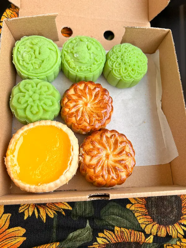 쇼케이스 안에 진열된 월병은 아름다운 색감과 섬세한 디자인으로 눈길을 사로잡는다. 겉은 바삭하고 속은 촉촉한 식감은 잊을 수 없는 맛을 선사한다.