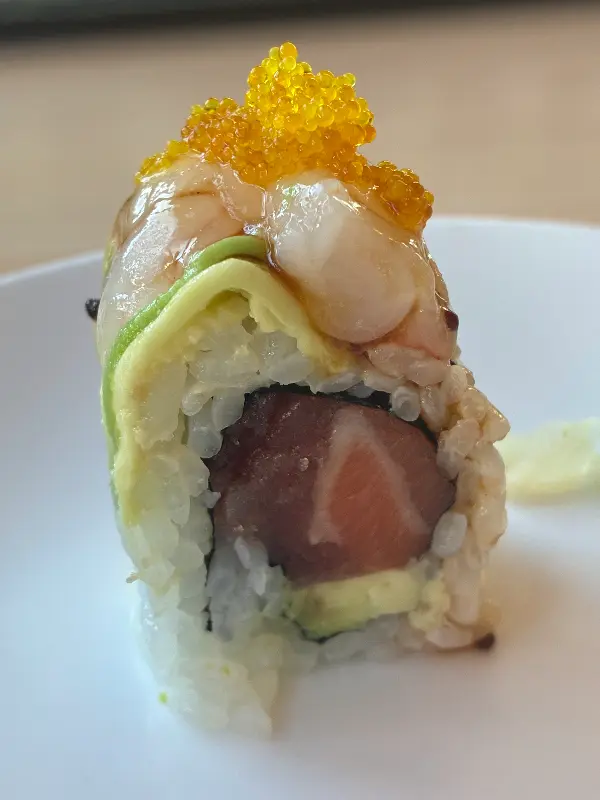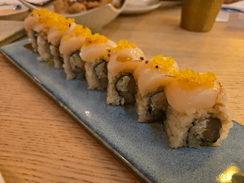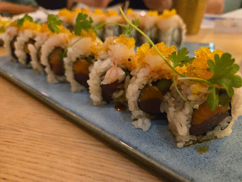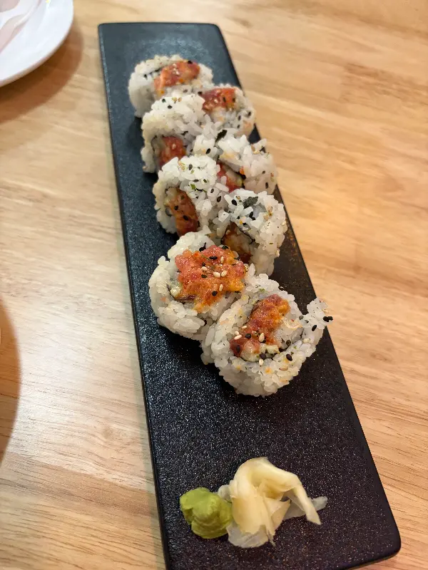 반면, 내가 주문한 매콤한 참치롤은 신선한 참치와 매콤한 소스가 어우러져 훌륭한 맛을 자랑했다. 톡톡 터지는 날치알과 아삭한 채소는 식감을 더욱 풍성하게 만들어주었다. 롤 위에 뿌려진 깨는 고소한 풍미를 더해주어, 젓가락을 멈출 수 없게 만들었다.