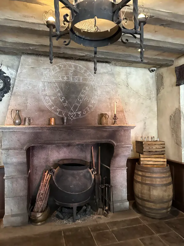 르 고블레 누아르는 에픽 유니버스 내에서도 “숨겨진” 레스토랑으로 알려져 있습니다. 처음 방문하는 사람들은 7~8분 정도 헤맬 수도 있습니다. 하지만 잘 알려지지 않은 복도를 지나 작은 뒷문으로 들어서는 순간, 이전과는 전혀 다른 세상이 펼쳐집니다. 미로 같은 복도를 따라 걷다 보면, 마치 해리 포터의 세계에 발을 들인 듯한 착각을 불러일으키는 인테리어가 눈앞에 펼쳐집니다. 다섯 개의 구역으로 나뉜 공간은 각기 다른 테마로 꾸며져 있으며, 가짜 계단과 위층에서 벌어지는 듯한 소리는 몰입감을 더합니다. 바깥의 번잡함과는 완전히 차단된 아늑한 공간은 편안하게 휴식을 취하며 맛있는 음식을 즐기기에 완벽합니다.