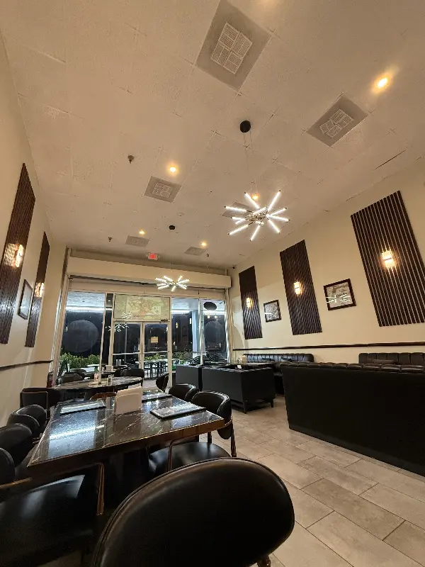 문을 열고 들어선 순간, 깨끗하고 현대적인 분위기가 눈에 들어왔다. 푹신한 소파와 우아한 대리석 테이블, 그리고 은은하게 빛나는 조명이 조화롭게 어우러져 따뜻하고 편안한 공간을 연출했다. 벽에 걸린 액자 사진들은 은은한 중동풍 인테리어를 더욱 돋보이게 하며, 차분하고 아늑한 분위기를 더했다. 마치 집에 있는 것처럼 편안한 느낌, 이곳에서라면 늦은 밤의 식사도 충분히 즐거울 것 같았다.