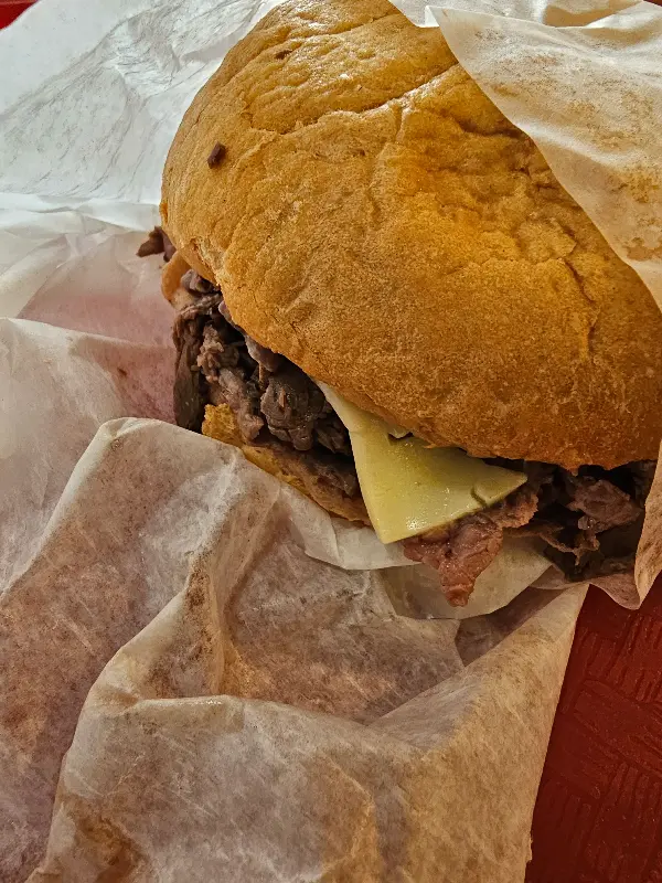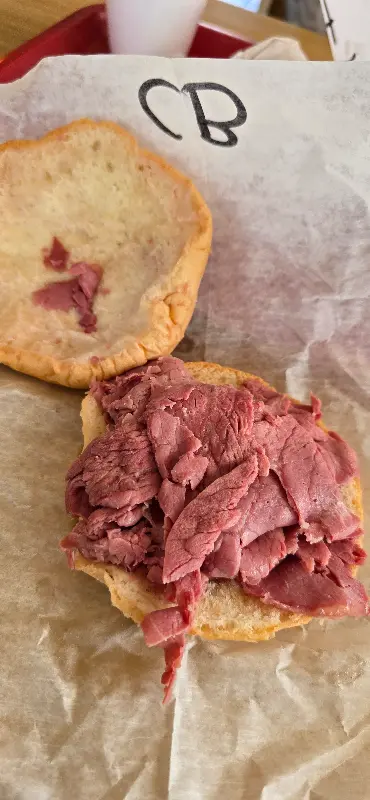 샌드위치 속 로스트 비프는 얇게 썰어져 있었고, 육즙이 풍부하고 매우 부드러웠습니다. 한입 베어 무는 순간, 입안 가득 퍼지는 풍미는 정말 잊을 수 없었습니다. 어떤 이는 “맛은 괜찮았지만 완전히 놀라울 정도는 아니었다”라고 평했지만, 제 입맛에는 완벽했습니다. 특히 함께 주문한 홀스래디시 소스는 아비스보다 훨씬 맛있었습니다. 빵 또한 부드러워서 로스트 비프의 풍미를 더욱 돋보이게 했습니다. “1968년에는 모든 롤빵을 토스트하고 버터를 발랐다”는 이야기는 비피 킹의 역사와 전통을 느끼게 했습니다.