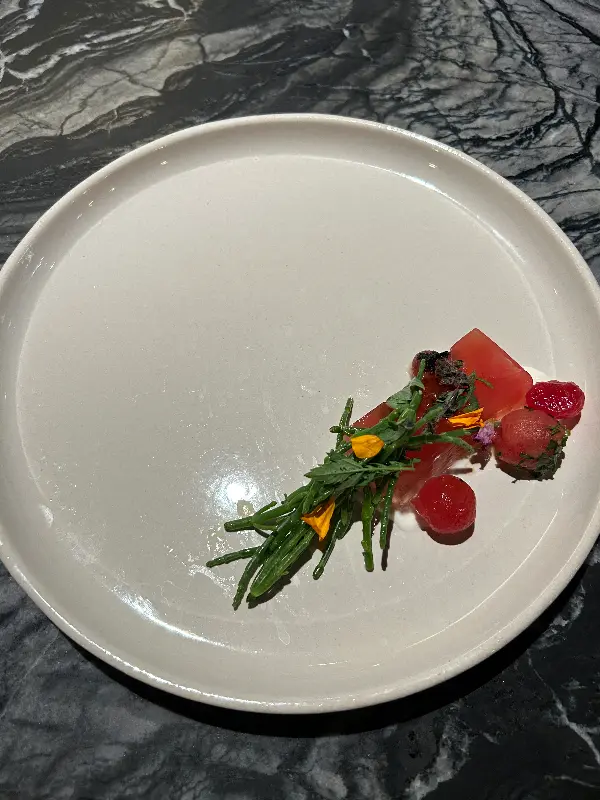자리에 앉자, 서버가 메뉴를 가져다주었습니다. The Foreigner에는 정해진 메뉴가 없습니다. 오직 셰프의 영감과 제철 식재료에 따라 매일 바뀌는 코스 요리만이 존재합니다. 낯설지만 신선한 경험에 대한 기대감이 더욱 커져갔습니다. 마치 한 편의 시처럼 다가오는 코스 설명을 들으며, 셰프의 창의성과 열정에 감탄했습니다.