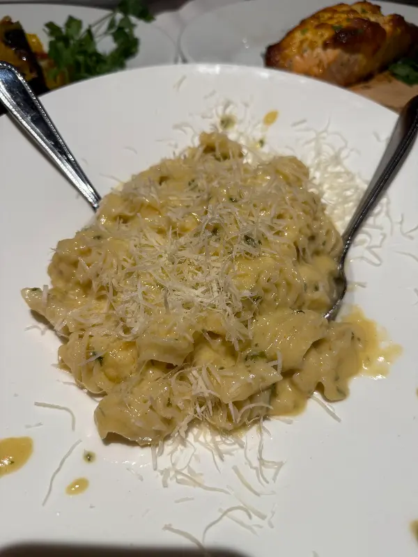 메인 요리로는 필레 미뇽과 랍스터 테일을 주문했습니다. 완벽하게 조리된 스테이크는 입에서 살살 녹았고, 랍스터 테일은 탱글탱글한 식감과 달콤한 맛이 일품이었습니다. 겉은 바삭하고 속은 부드러운 연어 스테이크는 저렴한 가격에 훌륭한 맛을 자랑하는 메뉴로, 많은 이들의 사랑을 받고 있다고 합니다. 트러플 파스타를 추천받았지만, 제 입맛에는 조금 느끼하고 짰다는 후기도 있었으니 참고하시면 좋을 것 같습니다.