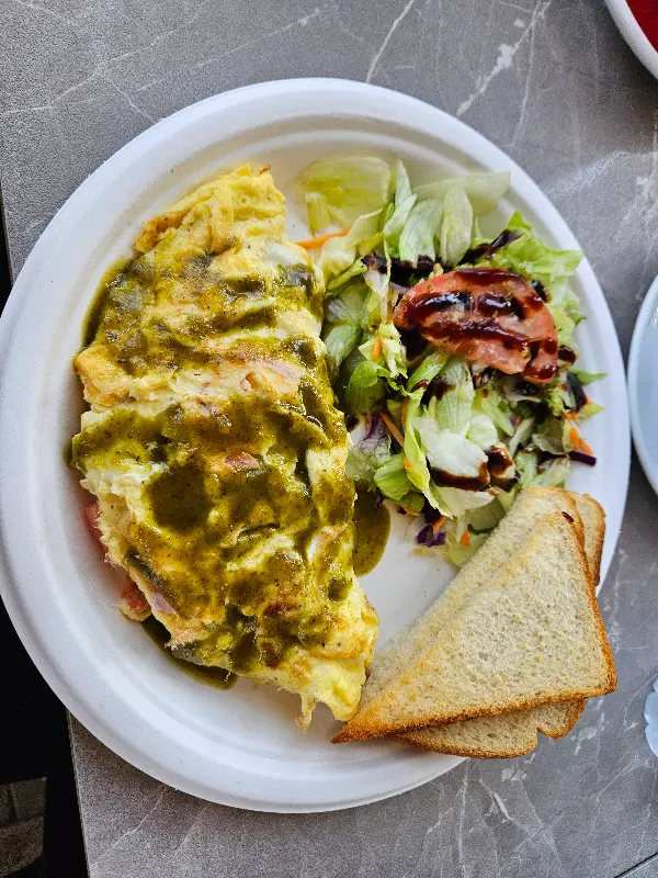 나는 카프레제 오믈렛을, 딸은 치즈 오믈렛을 주문했다. 잠시 후, 테이블 위로 먹음직스러운 오믈렛이 놓였다. 카프레제 오믈렛은 신선한 모짜렐라 치즈와 토마토, 바질이 듬뿍 들어 있어 향긋한 풍미가 일품이었다. 샐러드에는 발사믹 드레싱이 뿌려져 있었는데, 오믈렛의 느끼함을 잡아주어 완벽한 조화를 이루었다. 딸이 시킨 치즈 오믈렛 역시 부드럽고 고소한 맛이 훌륭했다.