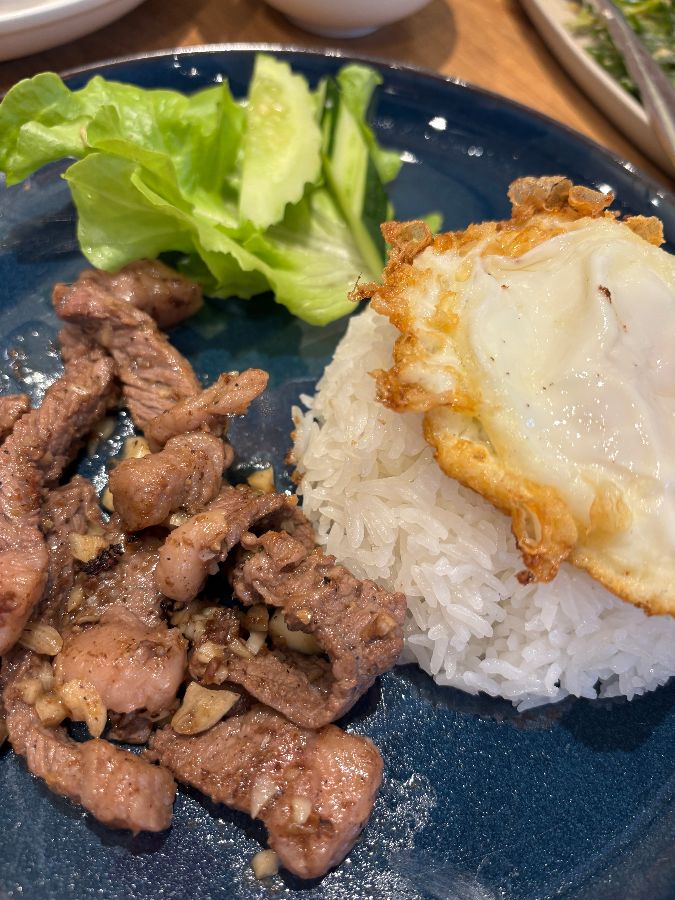 문을 열고 들어서자, 시원한 에어컨 바람이 땀을 식혀주었다. 매장은 전체적으로 밝고 깨끗했으며, 테이블 간 간격도 넓어 편안하게 식사를 즐길 수 있는 분위기였다. 은은한 조명 아래, 나무 소재의 테이블과 의자가 따뜻함을 더했다. 한쪽 벽면에는 태국의 풍경을 담은 사진들이 걸려 있어 마치 방콕의 작은 골목에 들어선 듯한 느낌을 받았다. “깔끔하고 모던한 분위기”라는 리뷰가 딱 들어맞는 공간이었다.