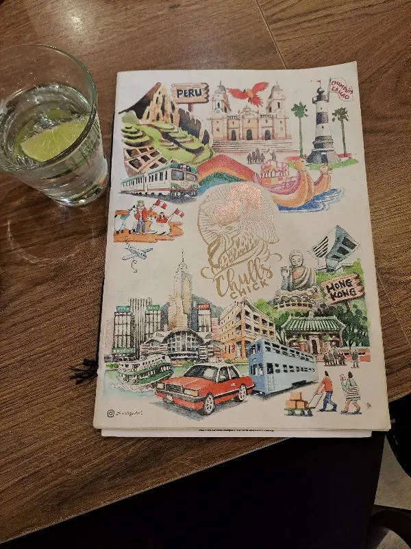문을 열자, 할로윈 장식이 한창인 아늑한 공간이 펼쳐졌다. 테이블 위에는 페루와 홍콩의 랜드마크가 아기자기하게 그려진 메뉴판이 놓여 있었다. 마치 페루 여행을 떠나기 전 설레는 마음으로 여행 책자를 펼쳐보는 듯한 기분이었다. 메뉴판 옆에는 시원한 물 한 잔이 놓여 있었다. 더운 날씨에 한 시간 넘게 걸어온 터라, 그 시원함이 더욱 반갑게 느껴졌다.