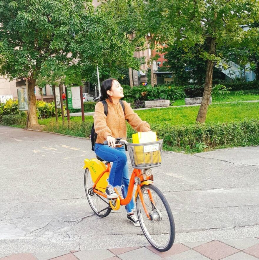 타이베이의 한적한 길을 자전거로 거니는 여행자의 모습. 우량취안을 찾아가는 여정의 시작처럼 느껴진다.