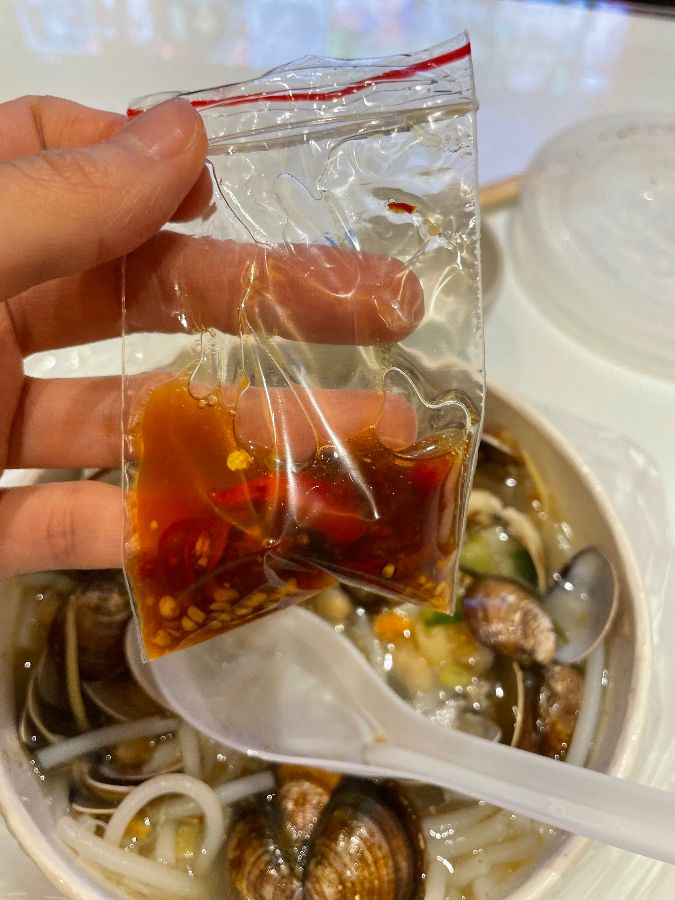 정갈하게 담겨 나온 미펀탕. 조개와 쫄깃한 면발이 어우러져 시원한 맛을 낸다.
