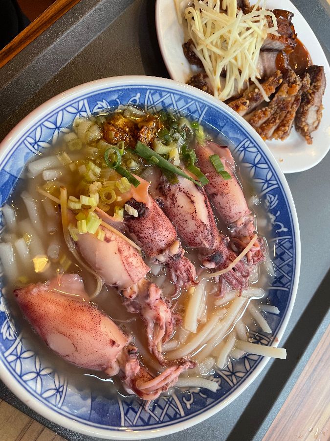 신선한 오징어가 통째로 들어간 쌀국수. 푸짐한 양과 시각적인 만족감이 돋보인다.