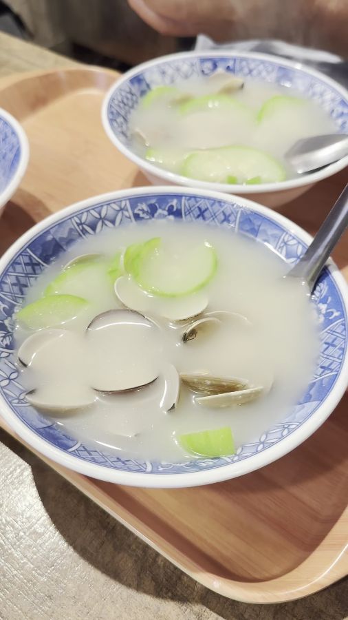 맑은 국물에 신선한 조개와 수세미가 들어간 요리. 담백하고 시원한 맛이 일품이다.