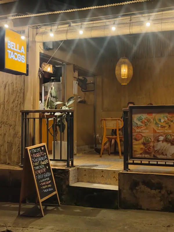 고된 하루를 마치고 숙소로 돌아가는 길, 문득 강렬한 무언가가 당겼다. 늘 먹던 나시고랭이나 미고랭 대신, 색다른 풍미로 지친 미각을 깨워줄 음식을 찾아 헤맸다. 그러다 어둠 속에서 한 줄기 빛처럼 나타난 곳, 바로 벨라 타코였다. 작은 간판에서 새어 나오는 따뜻한 불빛과 메뉴판에 적힌 타코, 부리토, 나초 등의 익숙한 이름들이 발길을 붙잡았다. 낯선 땅에서 만나는 멕시코 음식이라니, 망설일 이유가 없었다. 우붓 골목 맛집 탐험, 지금 시작한다.