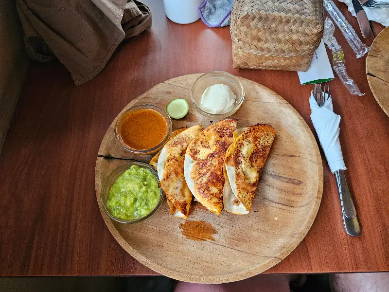 특히 닭고기의 촉촉함과 과카몰리의 부드러움, 그리고 살사의 매콤함이 환상적인 조화를 이루었다. 타코 하나하나에 정성이 가득 담겨 있다는 것을 느낄 수 있었다. 곁들여 나온 라임 조각을 살짝 뿌려 먹으니, 상큼함이 더해져 더욱 깊은 맛을 느낄 수 있었다.