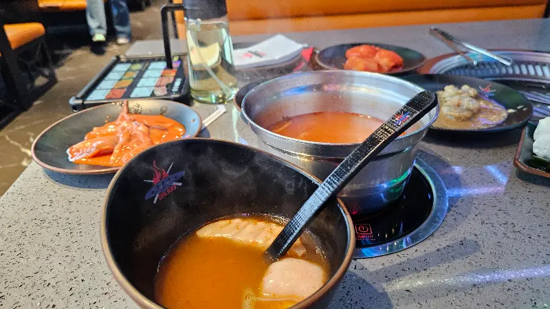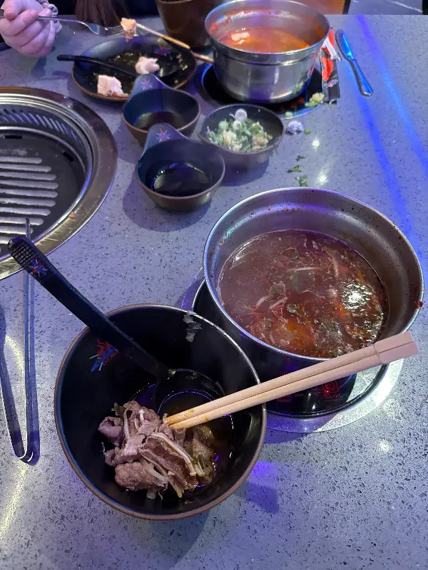한 달 남짓한 기간 동안 갤럭시 핫팟에 네 번째 방문을 하고 나니, 이제 리뷰를 쓸 때가 된 것 같네요. 이곳은 모든 면에서 완벽합니다. 깨끗하고, 재밌고, 분위기도 좋고, 서비스도 훌륭하고, 음식도 정말 맛있습니다! 저는 이 식당을 정말 좋아해요. 세 번이나 갔는데 매번 즐거운 시간을 보냈어요. 특히 매콤한 수프가 맛있었어요. 구워 먹을 음식도 많이 시켰고요. 이 식당은 정말 훌륭해요.