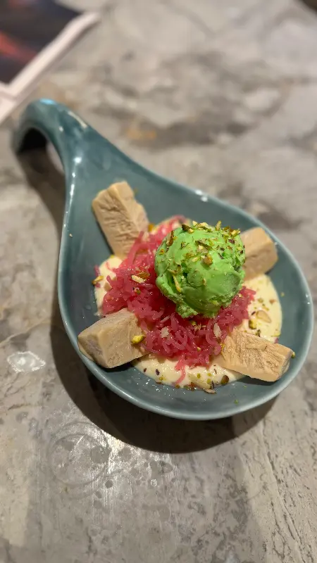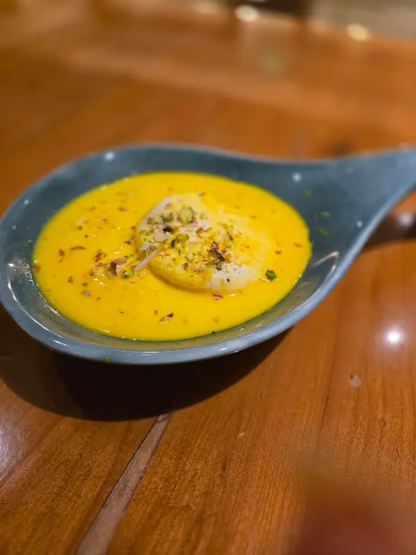 디저트로 주문한 라스말라이는 정말 훌륭했습니다. 부드러운 치즈 케이크와 달콤한 시럽의 조화는, 입안에서 사르르 녹아내리는 듯했습니다. 특히, 라스말라이 위에 뿌려진 피스타치오 가루는 고소한 풍미를 더해주어, 맛의 균형을 완벽하게 맞춰주었습니다. Copper Chimney에 방문한다면, 라스말라이는 꼭 한번 맛보시길 추천합니다.
