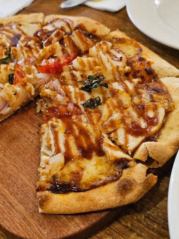 로스트 포크 립 외에도 피자와 샐러드 역시 훌륭했습니다. 훈제 바비큐 치킨 피자는 쫄깃한 도우 위에 훈제 치킨과 바비큐 소스가 듬뿍 올려져 있어 풍성한 맛을 자랑했습니다. 신선한 채소와 드레싱이 어우러진 샐러드는 입안을 상쾌하게 해주어, 느끼함을 잡아주는 역할을 했습니다.