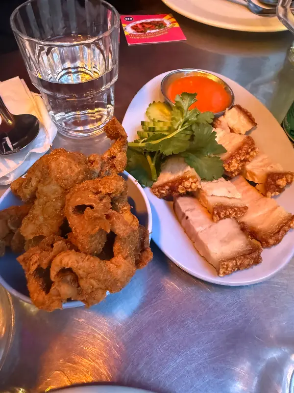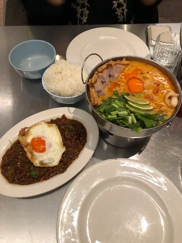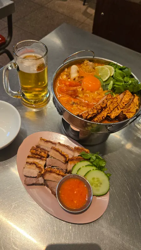 스피드보트 바는 다양한 태국 요리를 맛볼 수 있는 곳입니다. 바삭한 치킨 그린 망고 샐러드는 부드러우면서도 상큼한 시트러스 향이 일품이며, 님 볶음밥은 향긋하고 풍미 가득한 맛이 인상적입니다. 또한, 바삭한 돼지고기 후추 카레는 매운맛(8/10)이지만, 코코넛의 풍미가 균형을 잡아주어 맛있게 즐길 수 있습니다.