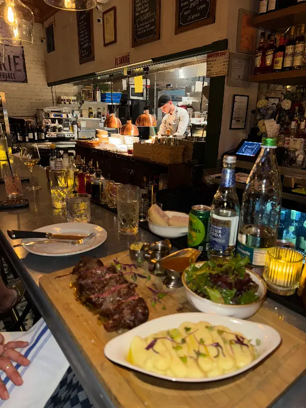 여자친구와의 1주년 기념 저녁 식사를 위해 방문한 날, 카운터 자리에 앉아 셰프들이 요리하는 모습을 직접 볼 수 있었다. 오늘의 스페셜 메뉴인 으깬 감자를 곁들인 스테이크는 부드러운 감자와 육즙 가득한 스테이크의 환상적인 조합을 자랑했다. 특히, 셰프들은 요리하는 내내 미소를 잃지 않고 친절하게 응대해 더욱 즐거운 식사 시간을 만들어주었다.