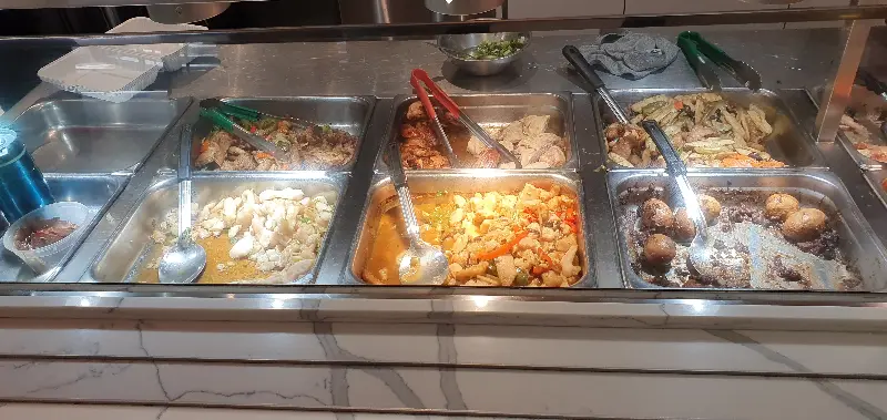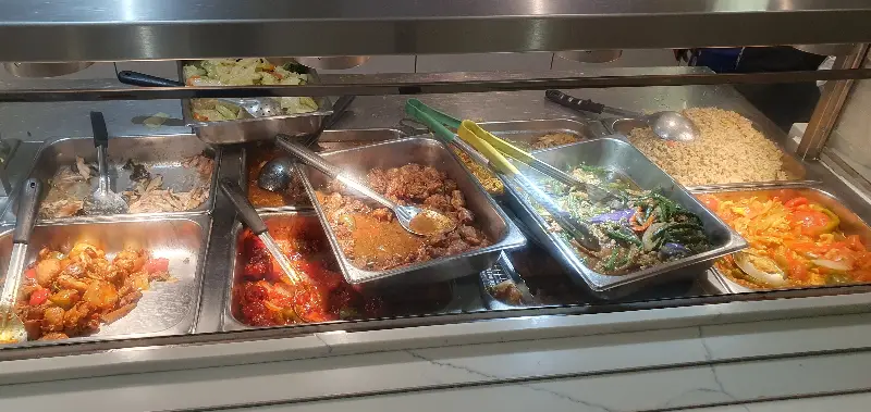 진열대 안에는 윤기가 자르르 흐르는 볶음 요리, 김이 모락모락 나는 국수 요리 등 다채로운 메뉴들이 시각적인 향연을 펼치고 있었다. 붉은 빛깔의 사천식 요리, 간장 소스에 졸여진 듯한 갈색 빛깔의 고기 요리, 신선한 야채들이 어우러진 볶음 요리까지, 보기만 해도 입안에 침이 고였다.