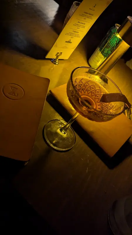 자리에 앉아 메뉴판을 펼쳐 들었습니다. 다양한 칵테일과 요리들은 하나하나 정성이 느껴지는 듯했습니다. 특히 시그니처 칵테일은 독특한 재료 조합과 아름다운 비주얼로 눈길을 사로잡았습니다. 어떤 칵테일을 골라야 할지 고민하는 사이, 친절한 직원이 다가와 칵테일에 대한 자세한 설명을 해주었습니다. 그의 추천을 받아 메스칼, 담배 시럽, 코코아가 들어간 ‘알마 페르디다’ 칵테일을 주문했습니다.