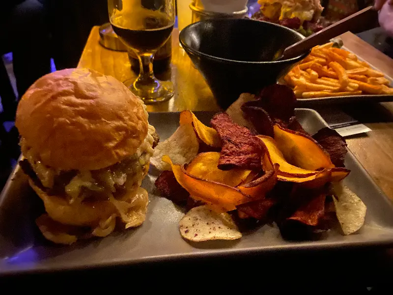 저는 양파 수프 버거도 주문했는데, 독특한 조합이 인상적이었습니다. 육즙 가득한 패티와 달콤한 양파 수프의 조화는 환상적이었습니다. 다만, 양파 수프의 양이 조금 적었던 점은 아쉬웠습니다.