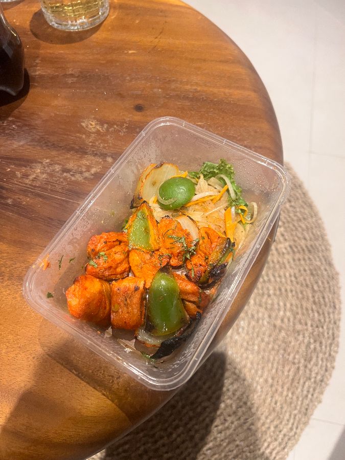 [상호명]의 요리는 신선한 재료와 셰프의 정성이 더해져 하나하나 예술 작품과 같습니다. 특히 포장된 음식에서도 그 정성이 느껴집니다. 깔끔하게 포장된 용기 안에는 먹기 좋게 잘려진 채소와 탄두리에서 갓 구워낸 듯한 소야 차프가 먹음직스럽게 담겨 있습니다. 이는 포장 주문을 해도 매장에서 먹는 것과 같은 퀄리티를 유지하려는 [상호명]의 노력을 엿볼 수 있게 합니다.