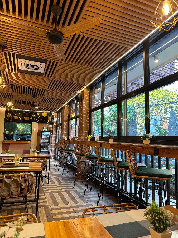 벽면을 장식한 푸른 식물과 네온사인, 그리고 다양한 그림들은 시각적인 즐거움을 더하며, 식사를 하는 동안 눈과 입이 모두 즐거운 경험을 선사합니다. 비록 음악 플레이리스트에 대한 개선점이 언급되기도 했지만, 이는 방문객의 취향에 따라 달라질 수 있는 부분이며, 전반적인 분위기를 해치지 않을 정도로 공간 자체가 주는 만족감이 큽니다.