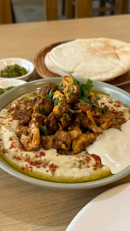 후무스 엘리야의 대표 메뉴는 단연 후무스입니다. 병아리콩을 주재료로 만든 후무스는 부드러운 식감과 고소한 맛이 일품이죠. 올리브 오일과 향신료가 더해져 풍미를 더하고, 신선한 채소와 함께 곁들이면 더욱 맛있게 즐길 수 있습니다.