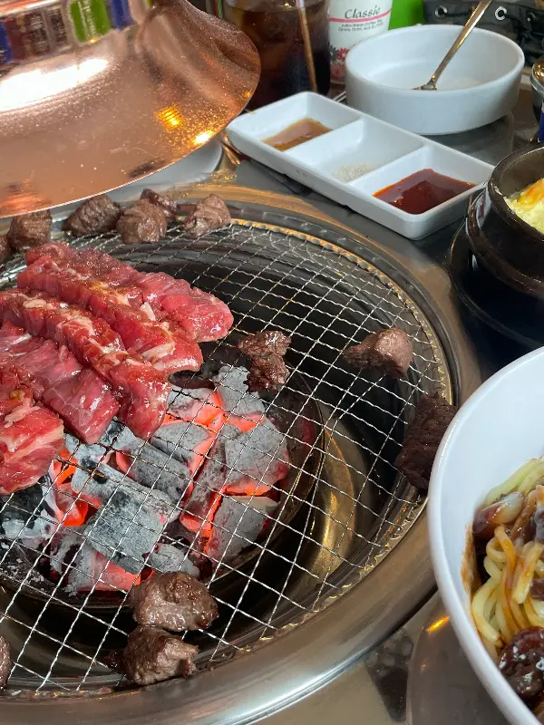 숯불 위에서 구워지는 바비큐의 모습은 그야말로 장관이었다. 붉은 빛깔의 신선한 고기가 치익- 소리를 내며 익어가는 모습은, 보는 것만으로도 식욕을 자극했다. 윤기가 자르르 흐르는 표면은, 육즙이 가득 차 있다는 것을 짐작하게 했다. 직원분들이 직접 고기를 구워주셔서 더욱 편안하게 식사를 즐길 수 있었다. 전문가의 손길로 구워진 고기는, 겉은 바삭하고 속은 촉촉한 완벽한 상태였다.