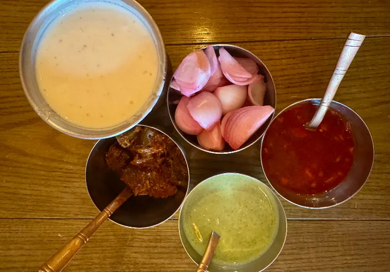 펀자비 라씨는 일반 라씨보다 조금 더 짭짤한 맛이 특징입니다. 처음에는 다소 낯설게 느껴질 수도 있지만, 알루 파로타의 느끼함을 잡아주면서 입안을 깔끔하게 마무리해주는 역할을 합니다. 특히 이곳에서는 손님에게 먼저 맛을 보여주고, 짠맛의 정도를 조절해주는 세심한 배려가 돋보였습니다.