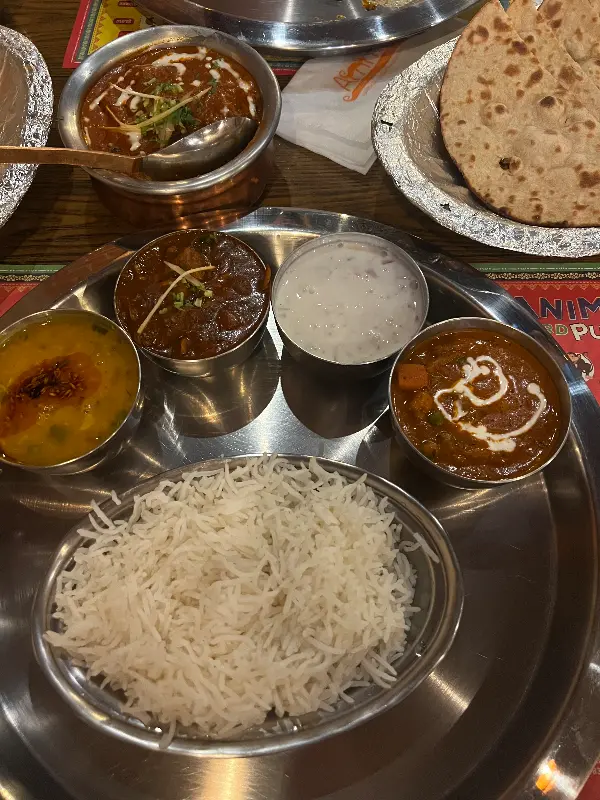 레스토랑 내부는 인도 특유의 분위기를 느낄 수 있도록 꾸며져 있습니다. 붉은색을 주조색으로 사용한 인테리어와 은은한 조명은, 마치 인도의 어느 도시에 와 있는 듯한 착각을 불러일으킵니다. 벽면에 걸린 인도 전통 그림과 소품들은, 이곳이 단순한 식당이 아닌 인도를 경험할 수 있는 문화 공간임을 느끼게 해줍니다.