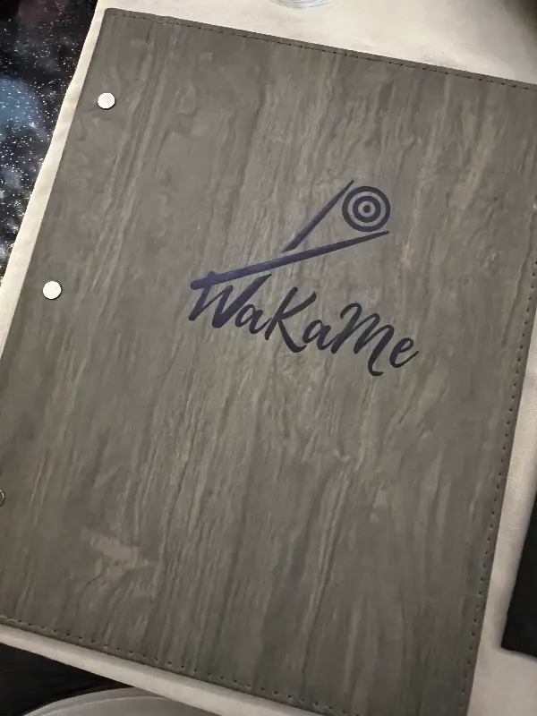 테이블에 놓인 메뉴판마저도 하나의 예술 작품처럼 느껴진다. 나무결이 살아있는 듯한 표면에 새겨진 와카메 로고는 단순하면서도 세련된 느낌을 준다. 마치 고급스러운 갤러리에 온 듯한 기분으로 메뉴를 펼쳐 들면, 어떤 음식을 맛볼지 설레는 고민이 시작된다.