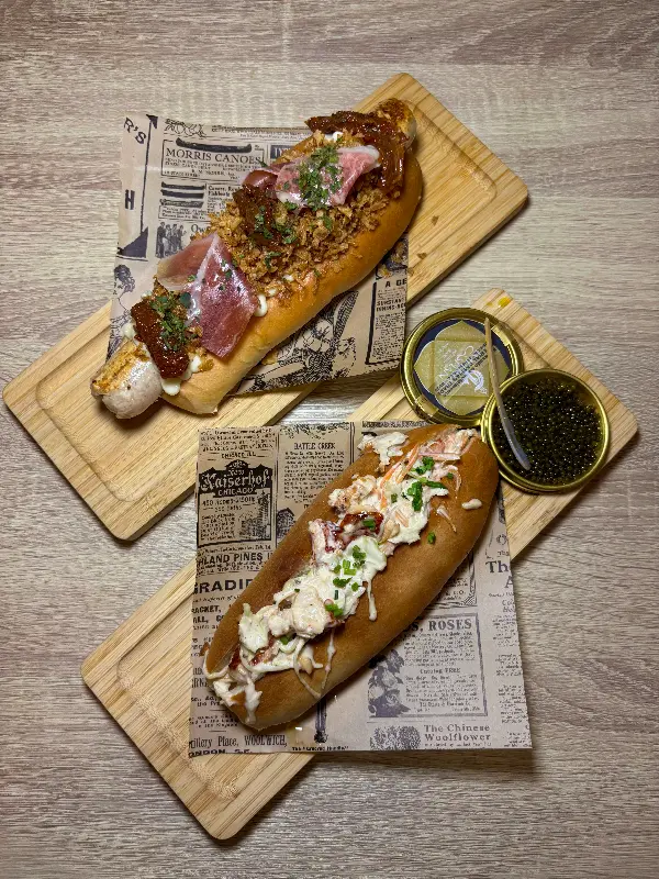 문을 열고 들어서니, 활기찬 분위기가 나를 맞이했다. 젊은 스태프들의 열정이 느껴지는 공간이었다. 메뉴판을 펼쳐보니, 클래식 핫도그부터 상상력을 자극하는 럭셔리 핫도그까지 다양한 선택지가 눈에 띄었다. 프랑크푸르터, 훈제 돼지고기, 치킨, 초리조, 심지어 팔라펠까지, 소시지의 종류도 다채로웠다. 비건 옵션이 있다는 점도 마음에 들었다. 마치 나만의 핫도그를 디자인하는 듯한 즐거움이 느껴졌다.