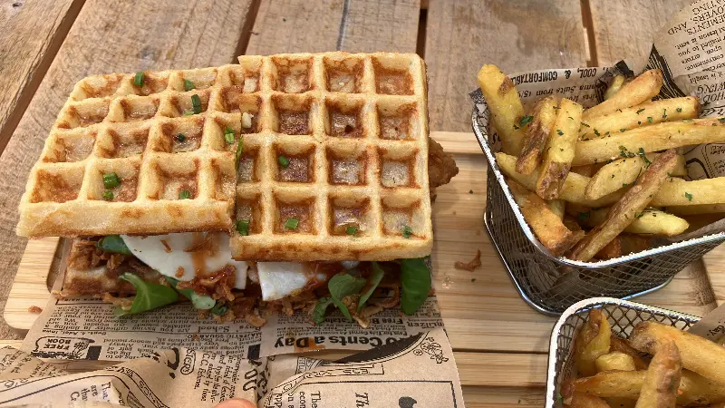 핫도그를 한 입 베어 물자, 입안 가득 퍼지는 풍미가 황홀했다. 고품질 소시지의 육즙과 갓 구운 빵의 부드러움이 완벽하게 어우러졌다. 독창적인 조합은 어디에서도 맛볼 수 없는 특별한 경험을 선사했다. 모든 재료가 직접 만든 것 같은 신선함이 느껴졌고, 정성껏 조리된 맛은 감동적이었다. 특히 서던 치킨 와플 버거는 이곳의 대표 메뉴라고 하니, 다음 방문 때는 꼭 맛봐야겠다.