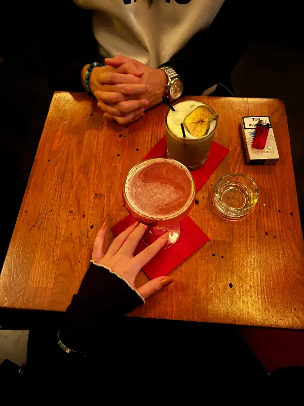 JULIET의 가장 큰 매력은 다양한 칵테일을 맛볼 수 있다는 점이다. 메뉴에는 칼로리와 알코올 함량까지 상세하게 표기되어 있어, 자신의 취향에 맞는 칵테일을 선택하기에 용이하다. 특히 이곳만의 특제 칵테일은 꼭 맛봐야 할 메뉴. 신선한 재료와 독창적인 레시피로 만들어진 칵테일은 입안 가득 퍼지는 풍미가 일품이다. 칵테일 한 잔과 함께, JULIET의 밤은 더욱 깊어간다. 나무 테이블 위에 놓인 칵테일 잔, 그 옆에 놓인 담배와 라이터, 그리고 두 사람의 손이 보인다. 붉은색 냅킨 위에서 빛나는 칵테일은 마치 작은 보석과 같다.